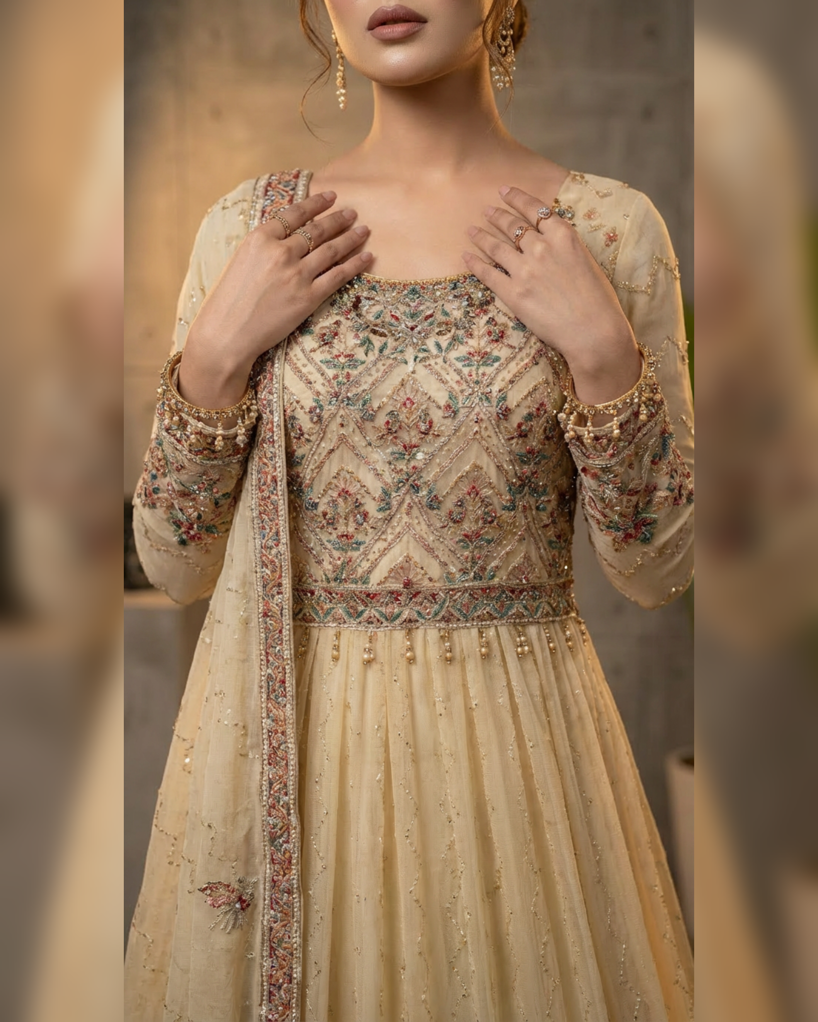 Step into the spotlight with πππππππ.Β From the detailed hand-embroidery to the dreamy flared silhouette, this outfit is a celebration of craftsmanship.